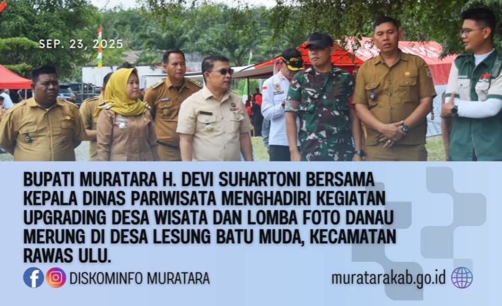 Pemerintah Kabupaten Musi Rawas Utara (Muratara ) terus menunjukkan keseriusannya dalam mengembangkan sektor pariwisata berbasis potensi lokal. Hal itu ditunjukkan melalui penyelenggaraan Upgrading Desa Wisata dan Lomba Foto Danau Merung yang berlangsung di Desa Lesung Batu Muda, Kecamatan Rawas Ulu kabupaten Muratara Selasa (23/9/2025)