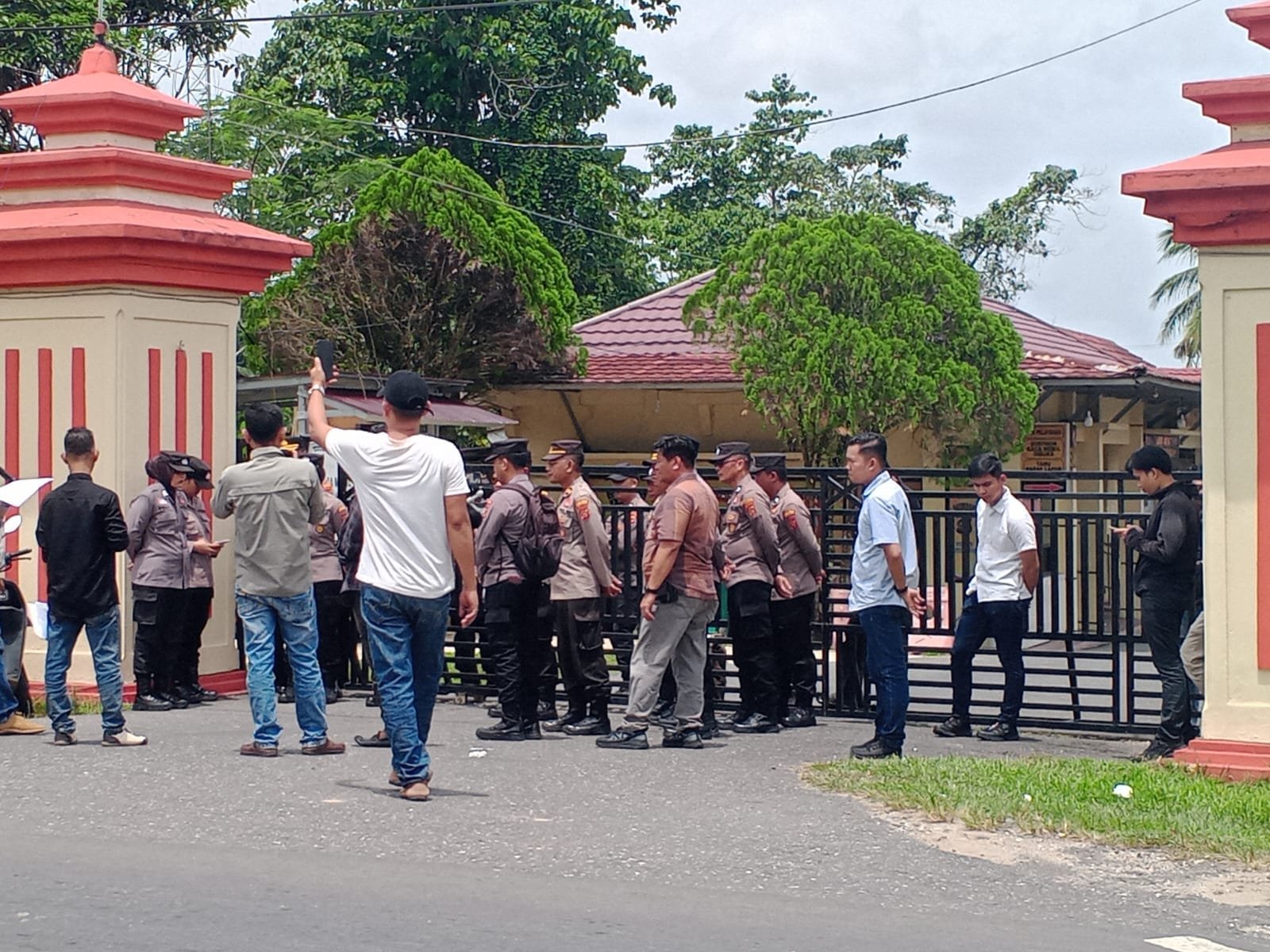 LSM Jurnalis Bersatu menggelar aksi damai di depan Mapolres Sarolangun, Provinsi Jambi, Kamis (26/2/2026). Aksi tersebut dilakukan sebagai bentuk kepedulian terhadap maraknya aktivitas tambang emas ilegal yang telah menimbulkan korban jiwa serta kerusakan lingkungan.