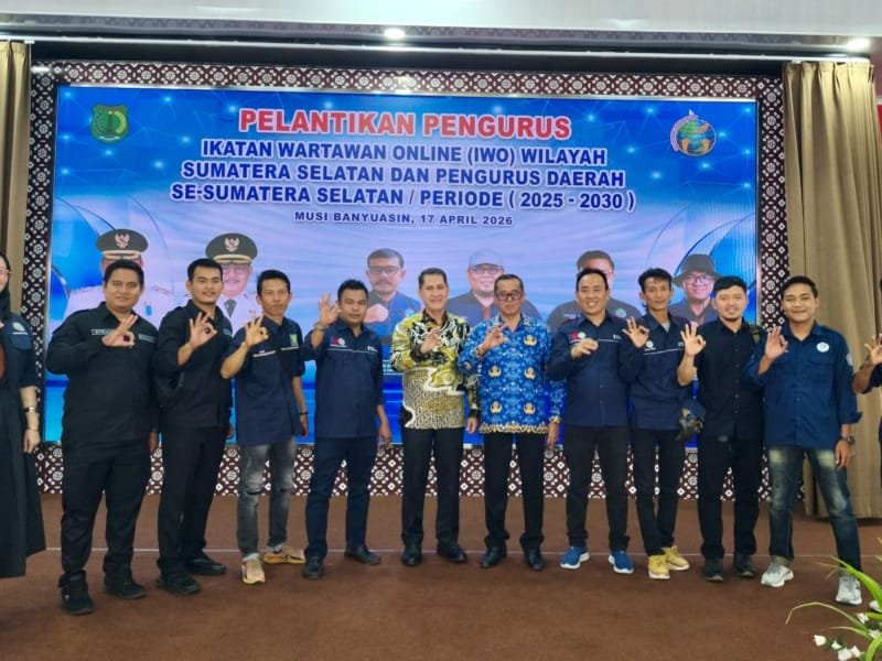 Pengurus Daerah Ikatan Wartawan Online (IWO) Kabupaten Musi Rawas Utara resmi dilantik untuk masa bakti 2026–2031 dalam kegiatan pelantikan serentak se-Sumatera Selatan yang digelar di Pendopoan Griya Bumi Serasan Sekate, Kabupaten Musi Banyuasin, Jumat (17/4/2026).